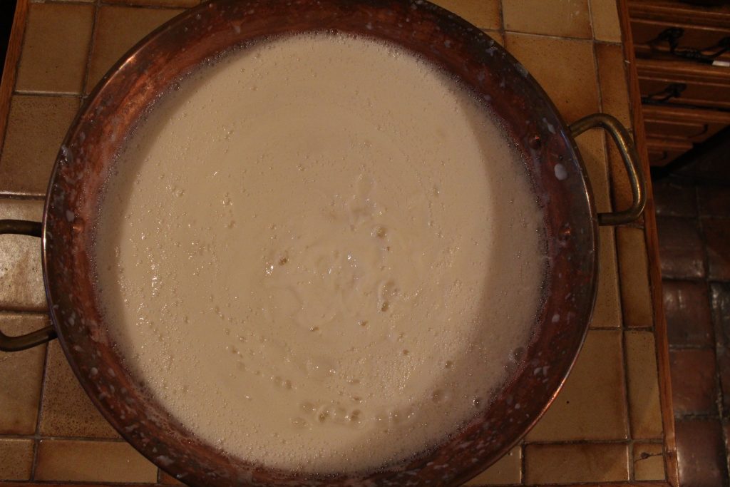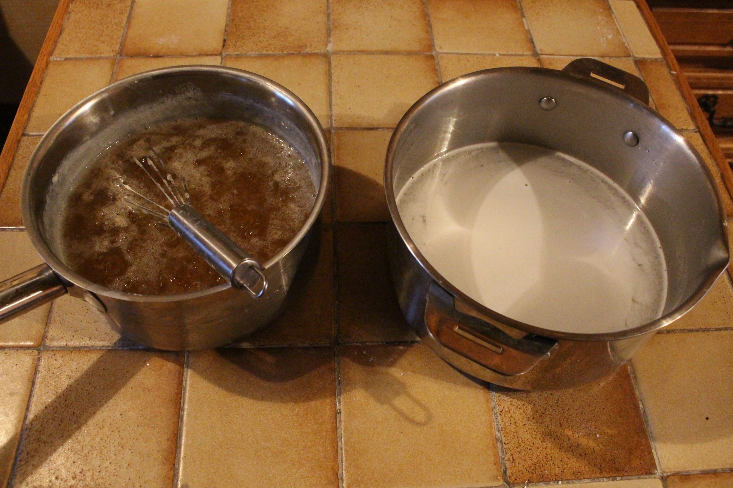 1)* Faire bouillir 1L d’eau puis verser le savon râpé dans la casserole en mélangeant